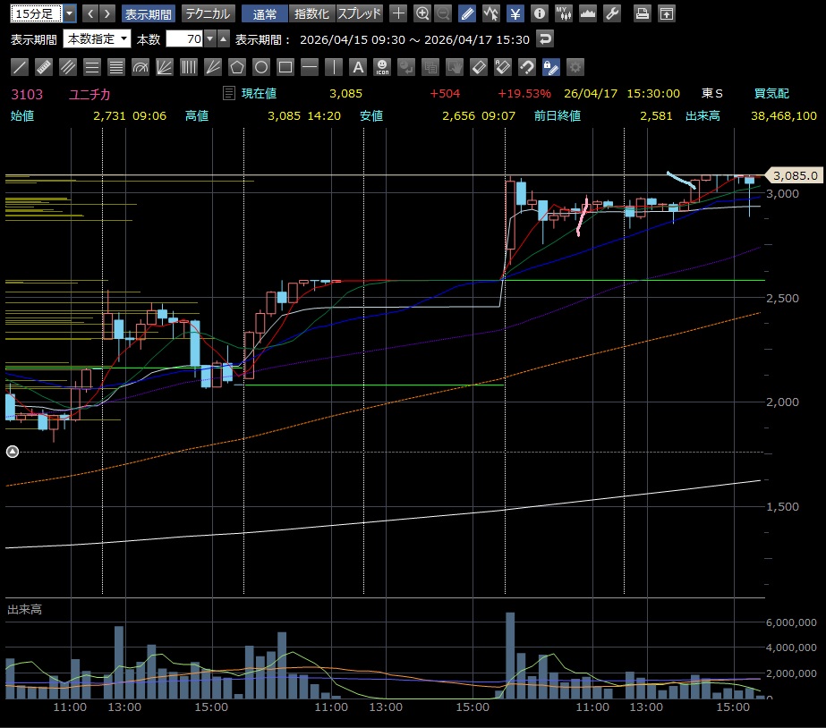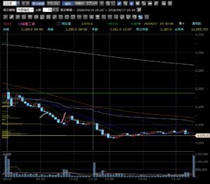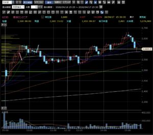 東洋エンジニアで朝方は気を取られていたのでこっちに気づかなかった。しかし1月、2月の頃は並行して3銘柄くらいは見れたものだが、キャパが明らかに小さくなっていしまっている。これも微熱含む体調の影響・・・か?